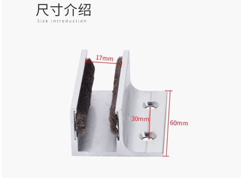 F型止擺器采用鋁質(zhì)材質(zhì),雙邊都設有毛條,提升門在移動過程中的靜音效果。適用于各類玻璃門、自動門及感應平移門。具有止擺、定位、防晃等作用。適夾門厚度:8mm-----12mm。